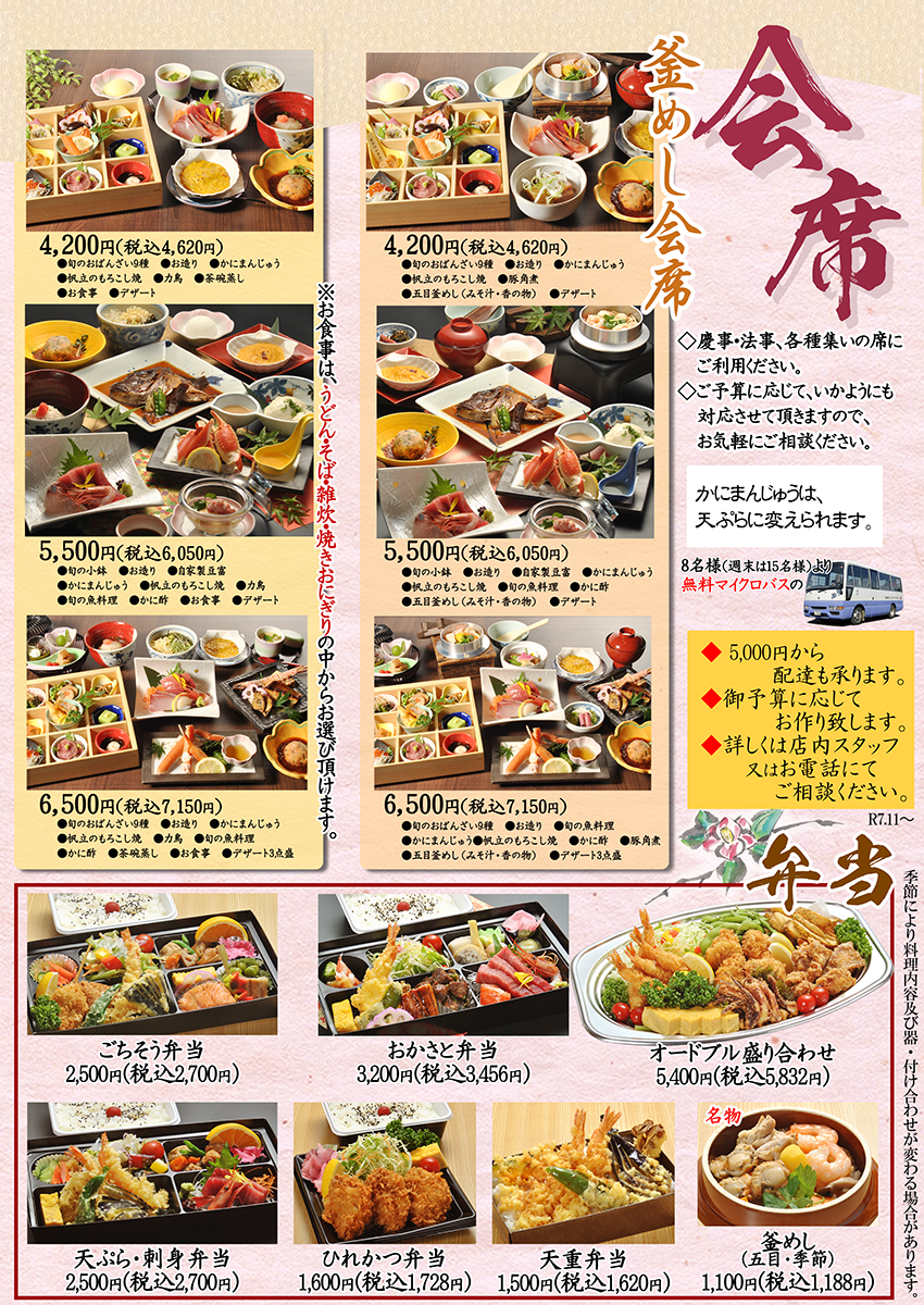 釜めし会席 (11品) お一人様 5,500円 (税込6,050円)