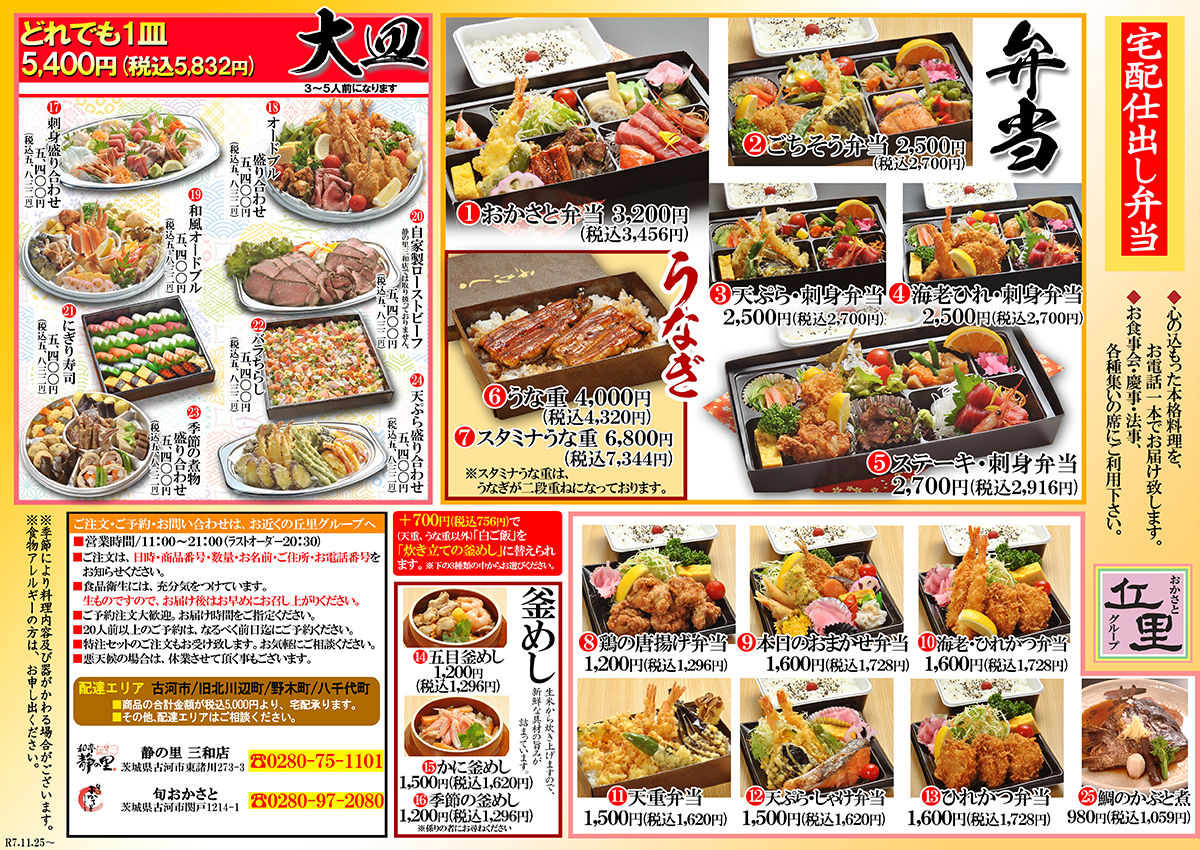 仕出し弁当【旬おかさと・和食丘里古河店・静の里三和店】