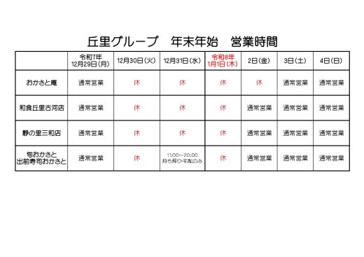 平素より丘里グループをご利用いただき、誠にありがとうございます。