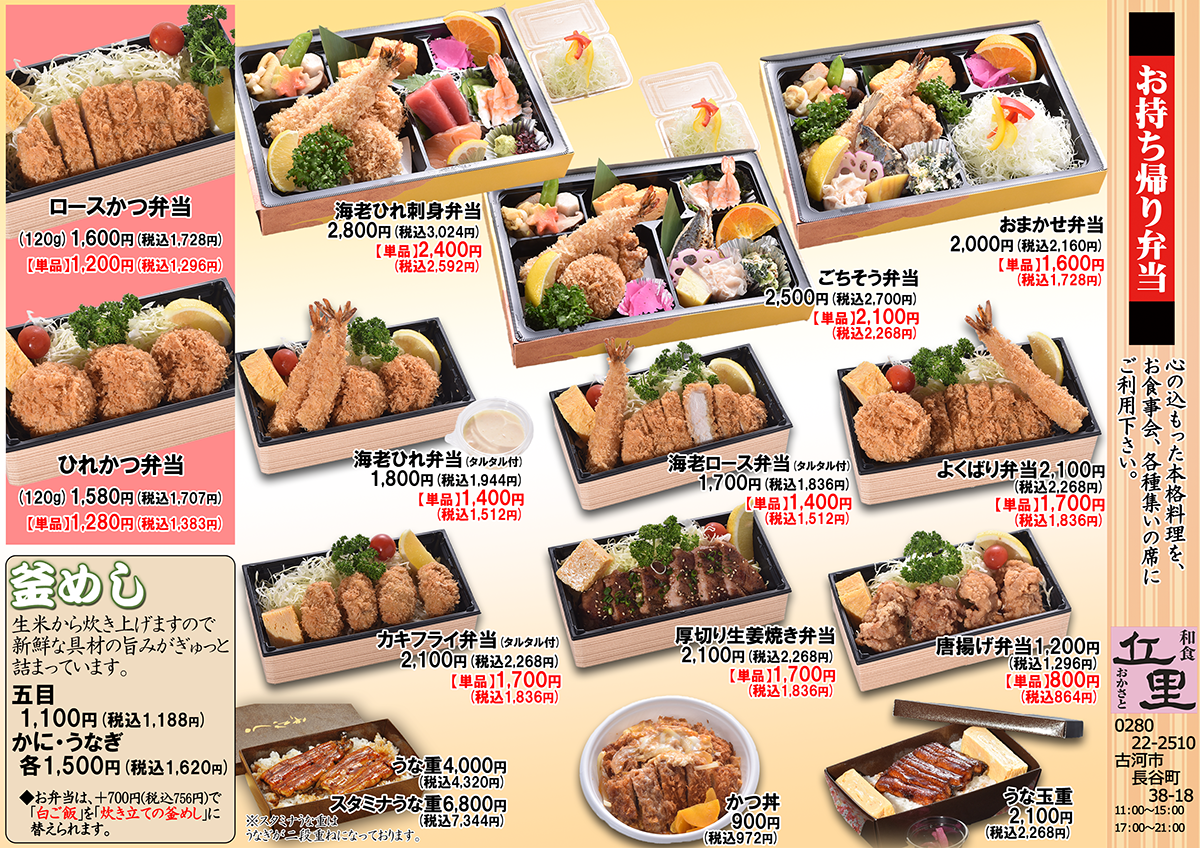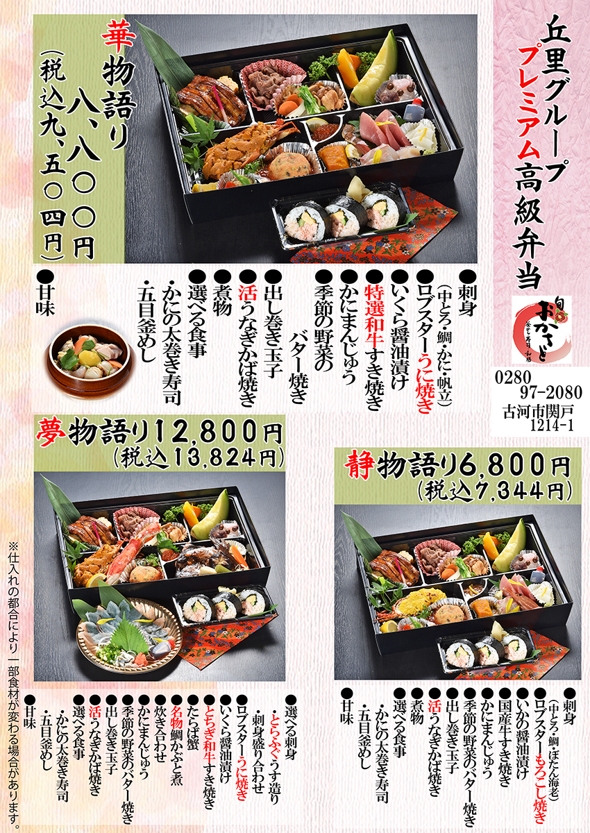仕出し弁当【旬おかさと・和食丘里古河店・静の里三和店】